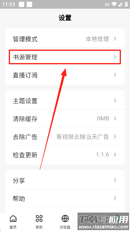 2、进入设置后找到书源管理并点击。