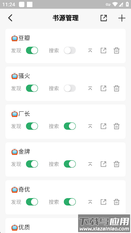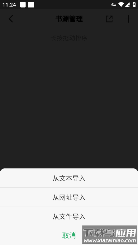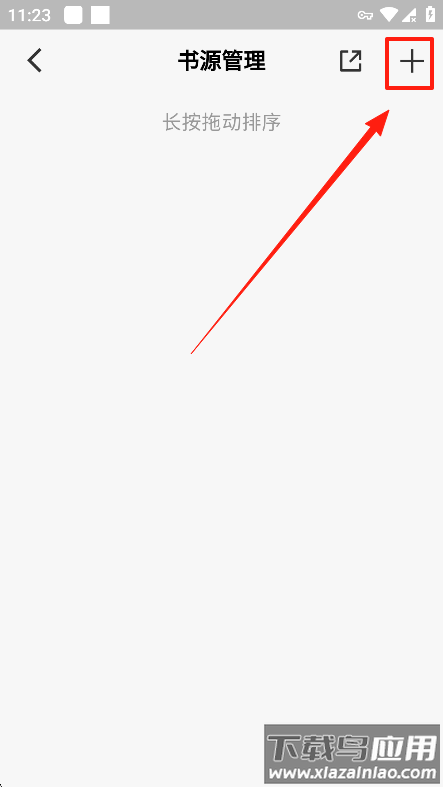 3、在书源管理页面点击右上角加号按钮。