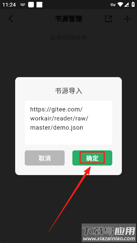 5、输入本文提供的书源地址并点击确定。