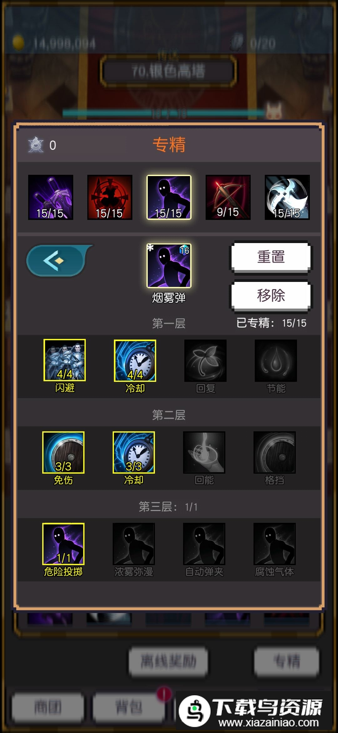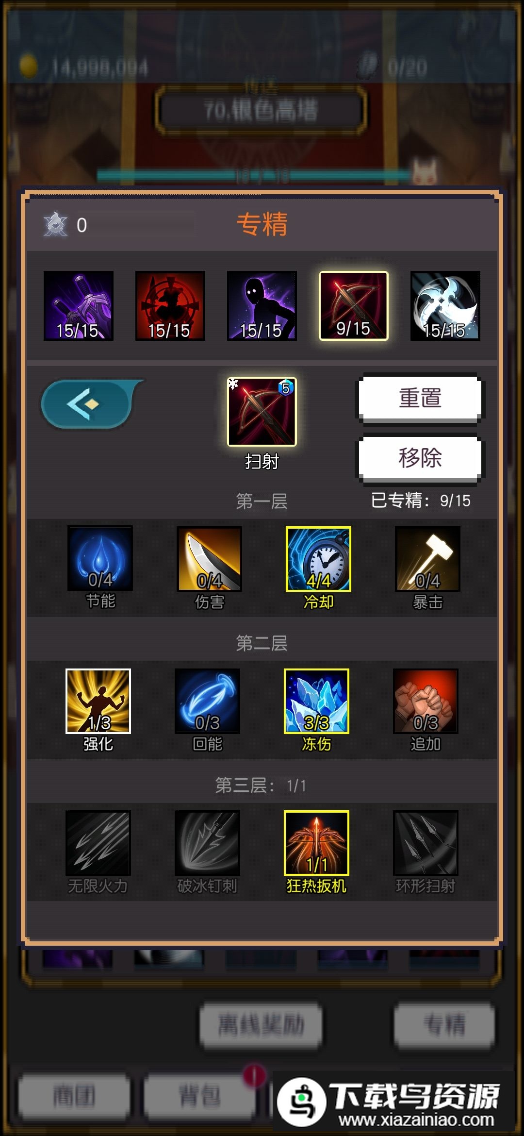 前期思路以生存为首要目标,输出次之。多冲几关获取专精点,即使输出刮痧也没关系,能过关即可。确保法力值足够,否则伤害会更低,法力不足就点减少消耗的天赋;