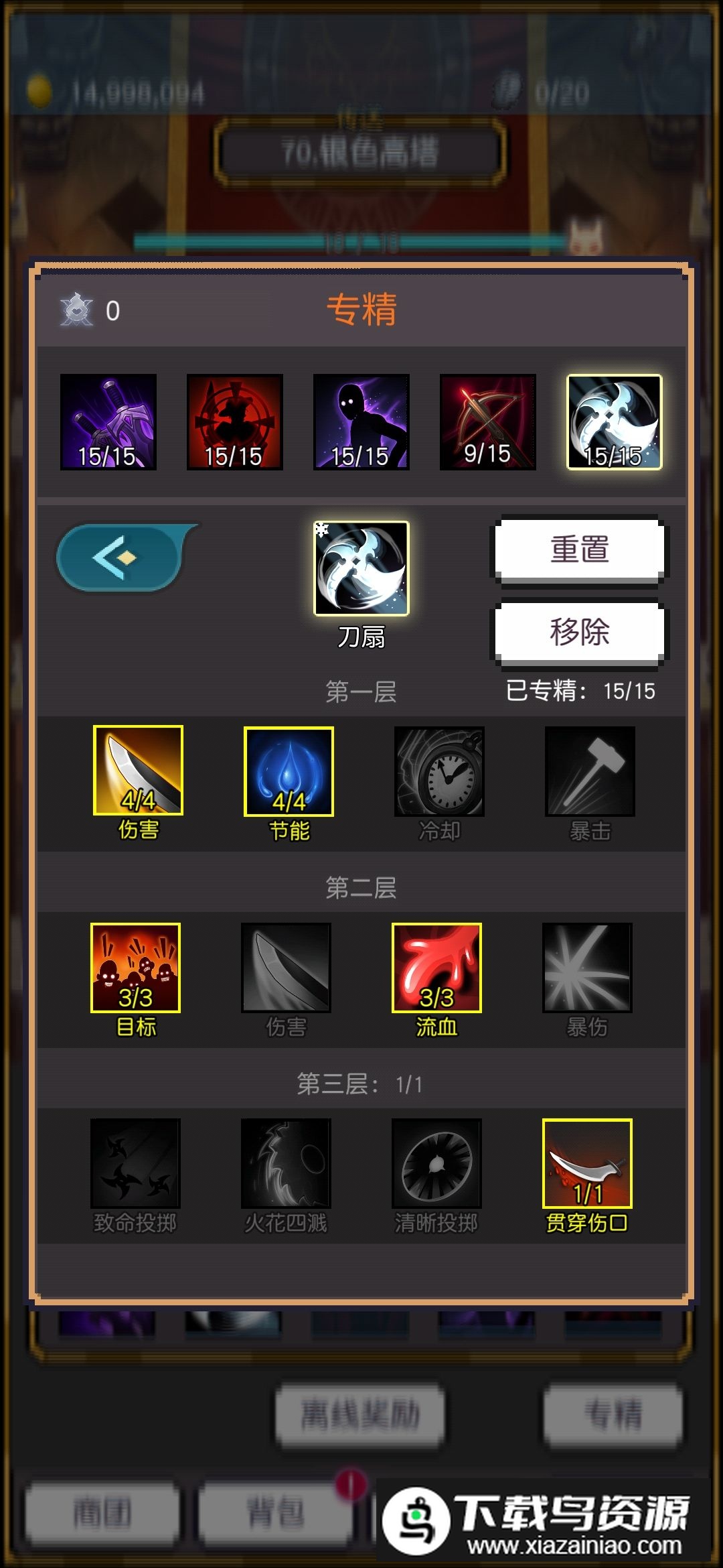 2. 技能随等级逐步解锁,每通关一层可获得专精点。前期可用扫射慢慢推进,输入礼包码taptap开箱获取装备,优先选择敏捷、体能、护甲与击中回复属性。20级后开启秘境模式,能快速升级并收获大量金币,形成开箱-推图-专精-冲秘境的循环;
