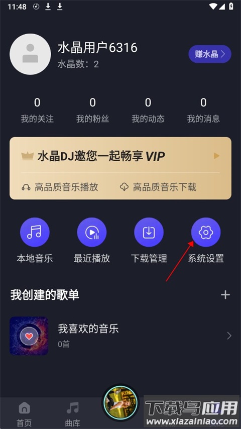 1、下载并进入水晶DJ app,点击下方“我的”页面;