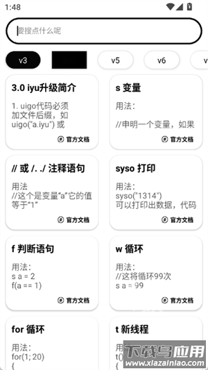 iApp代码大全,常被称为iApp,是一款可在手机上完成应用程序开发的工具;它支持裕语言、Java、JavaScript及Lua等多种编程语言,让你在空闲时间随时打开应用,动手设计自己的程序;通过简便的操作即可构建理想的应用界面,并能与朋友分享你的创作成果。