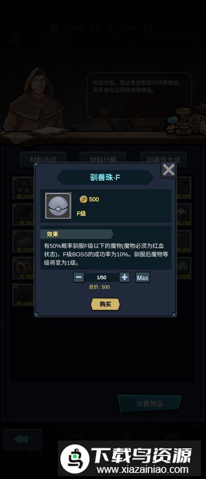 2. 用金币购买数个F级驯兽珠,雇佣三名500金币的初级佣兵即可开始冒险,优先将驯兽术提升至D级;