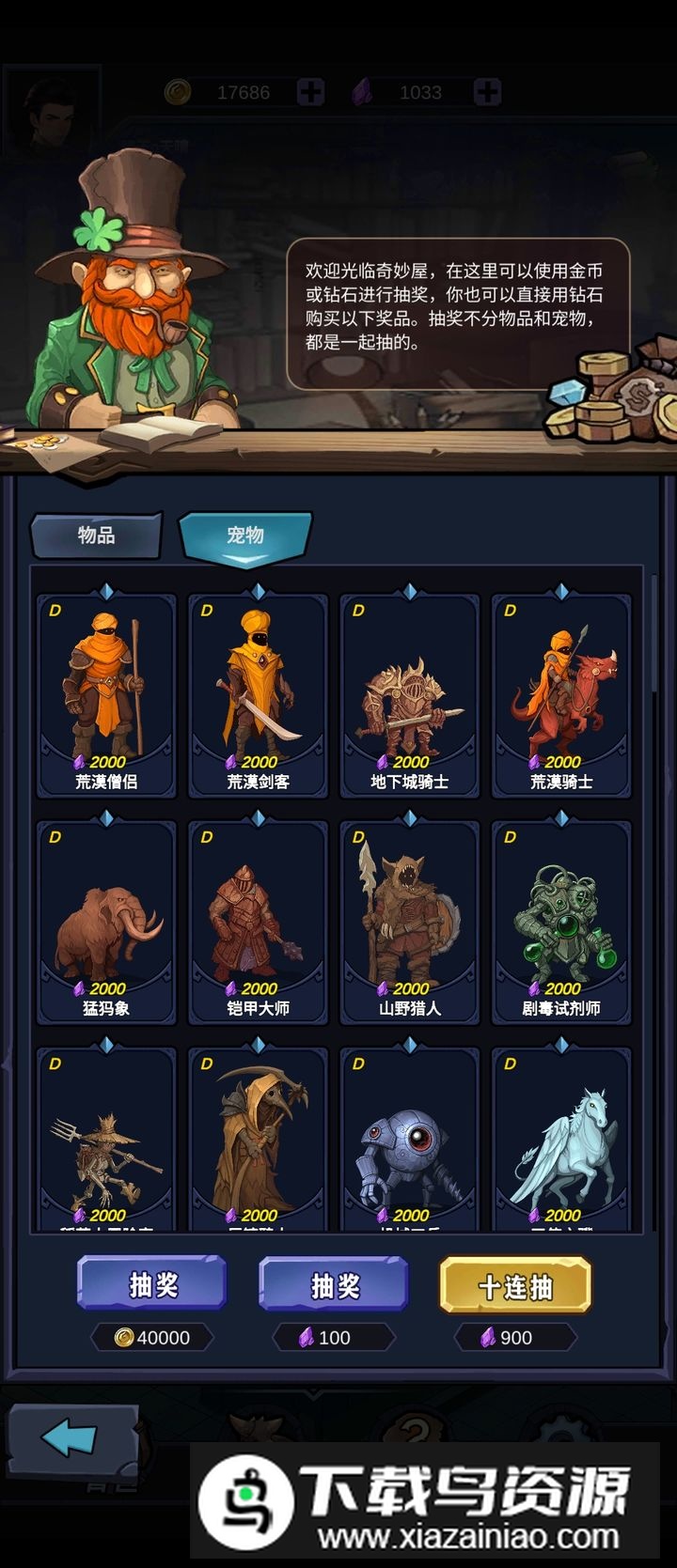 4. 推进至10层后可以雇佣2000金币的高级佣兵加速升级,后续专注于宠物培养;
