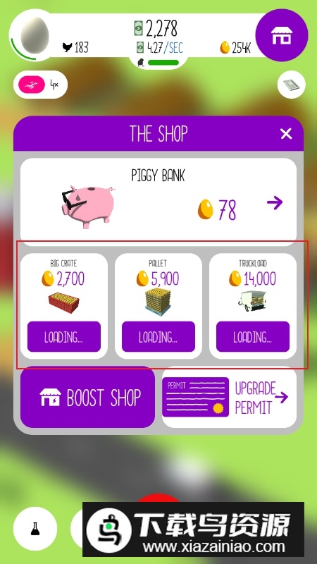 4、点击右上角商店按钮,可购买各类道具与设备,例如加速器、装饰物或新型鸡种,帮助你更快发展。