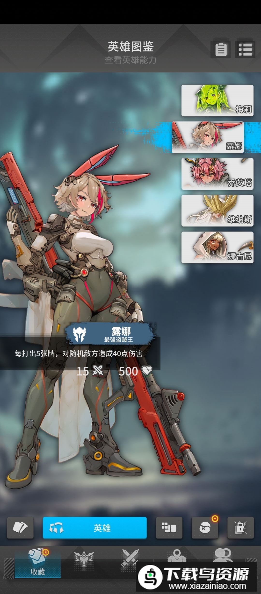 2. 露娜:机制简单直观,每打出五张牌造成40点伤害,建议多带低费卡牌加快触发频率,羽毛球与巨雷枪等可重复使用的卡牌较为合适;