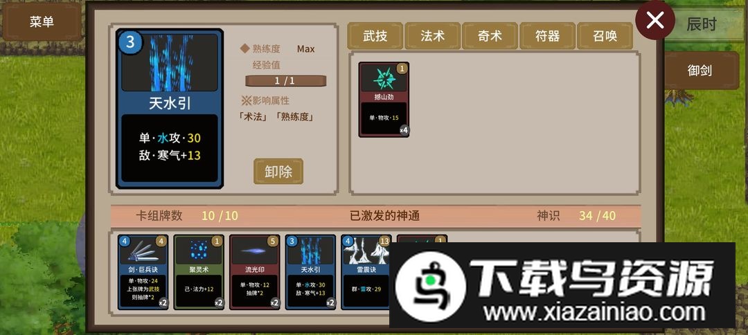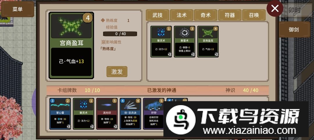 抽牌流技能搭配示例;练气十三层完成响云阁房风山东的火龙草任务,触发妖族剧情与青英会赛事;获取神通“召唤狞狩”需在房风山右上洞穴拾取御兽诀,战斗中對血少的狞狩使用以提高捕捉成功率。