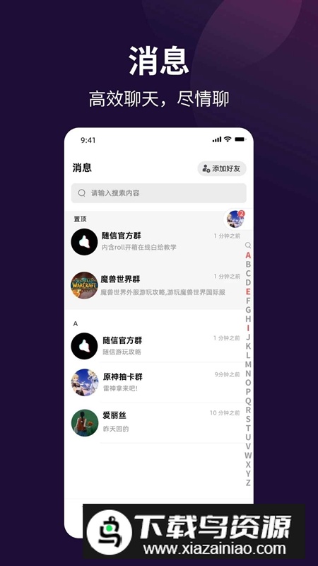 2.好友管理:支持快速搜索与添加好友,并可对联系人进行分组管理,让社交关系清晰有序、维护更高效。
