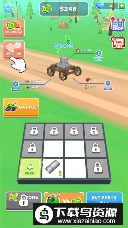 3、坦克从初始小型状态一步步合成为庞然大物,进化过程充满视觉冲击力;