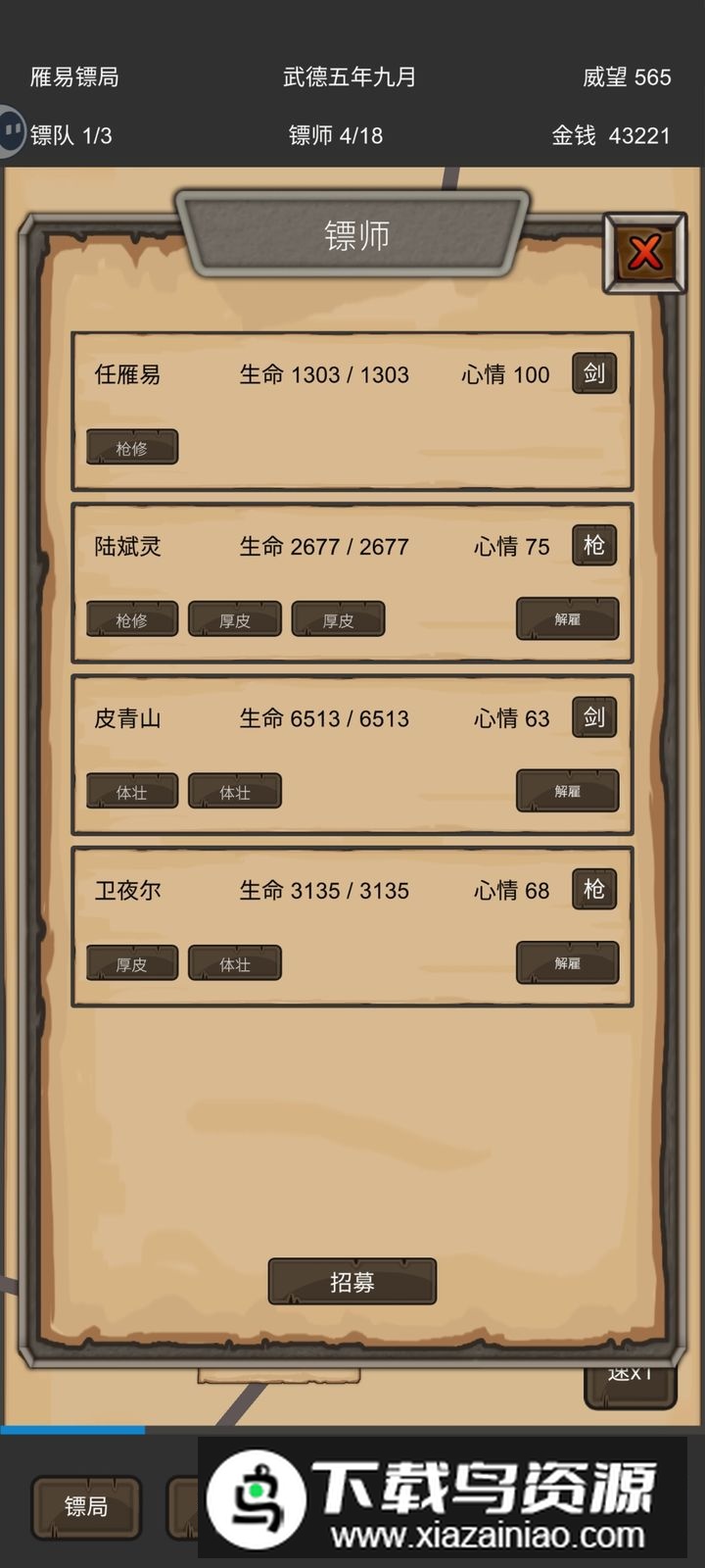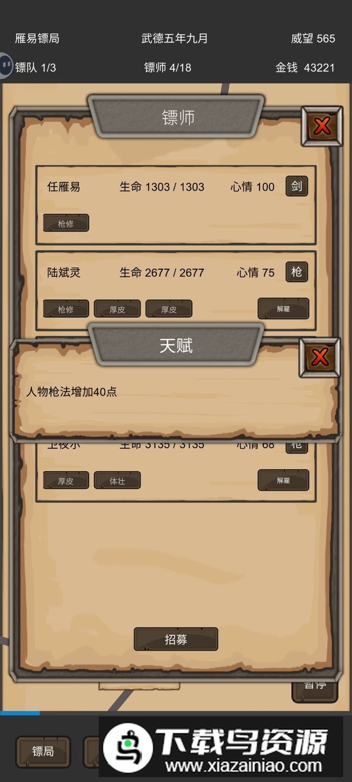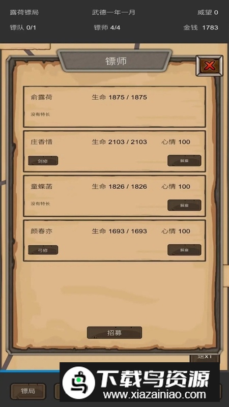 重启之镖局人生官方正版是一款充满挑战的模拟经营游戏,你将化身镖局掌门,从零开始打造自己的运输事业;通过招募各路英雄、培养镖师队伍、承接各地委托,一步步壮大镖局声望;途中不仅要应对强盗劫镖的危机,还得克服天气变化与地形阻碍,带领镖局在乱世中站稳脚跟;喜欢的玩家不妨在本站下载体验。