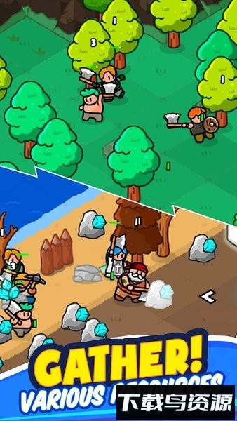 - 战场获取木材、矿石、肉类等多元资源。