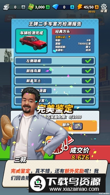 在路边估车王这款模拟汽车估价与拍卖的休闲游戏中,你将扮演一名专业的车辆评估师,体验从检查车况到参与竞拍的全过程。这个特别版本为你准备了用之不竭的虚拟资金,同时彻底移除了广告干扰,让你全程专注享受汽车交易的乐趣;如果喜欢这类模拟经营游戏,欢迎在本站下载体验。