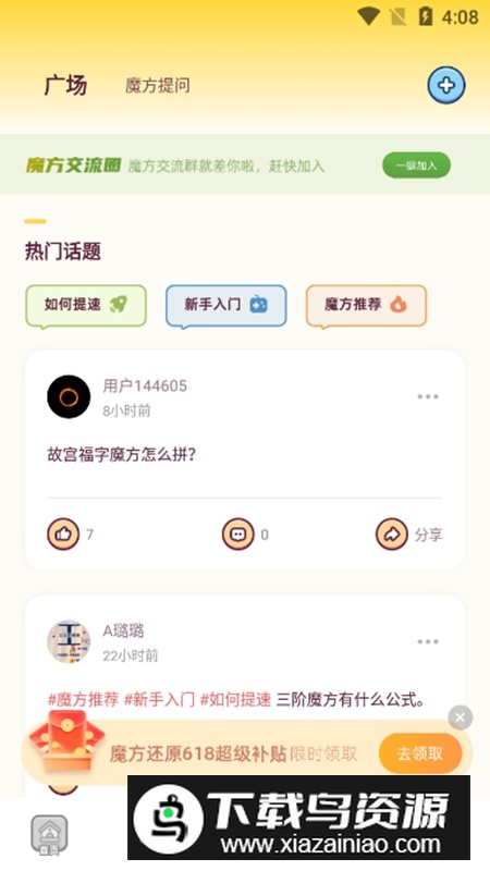 2.魔方爱好者社区:内置交流平台,可分享心得、学习高手经验,形成互动学习氛围;