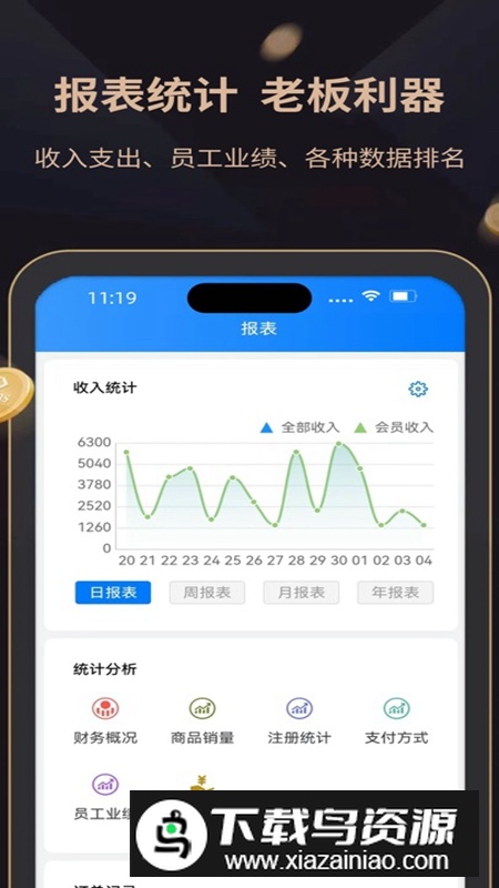 1. 报表分析功能:自动生成多维度经营报表,帮助商家实时掌握营业数据;