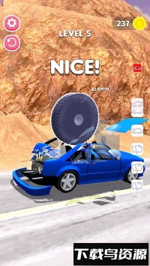 3、低门槛高上限,单指滑动即可操控轮胎,新手能快速上手;高阶玩家需掌握角度和力度,通过精准撞击触发连锁破坏,挑战极限分数记录;