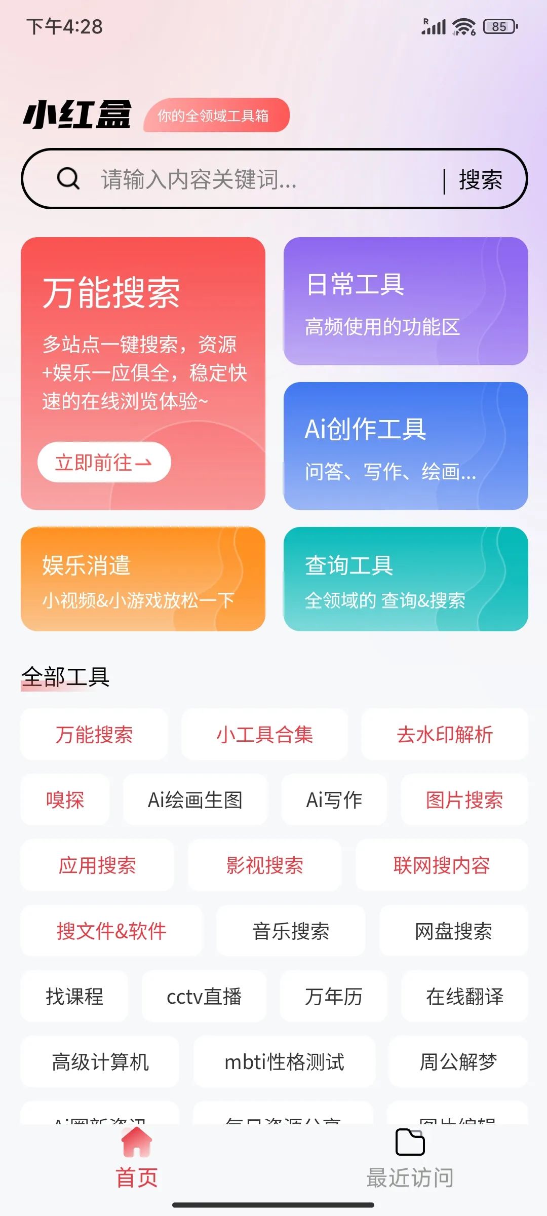 这款应用被开发者称为全领域工具箱,其万能搜索功能确实名副其实。