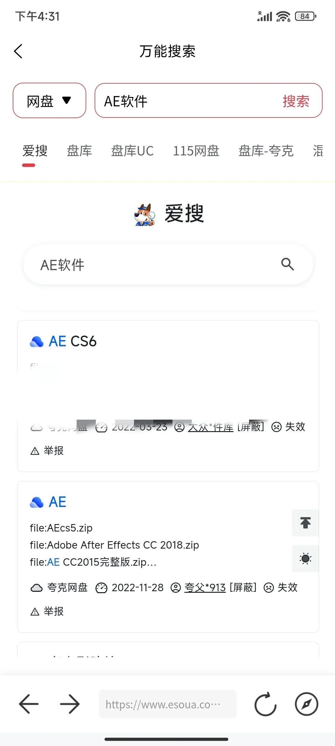 万能搜索板块支持多种资源查找,包括网盘内容、文件、视频、软件和音乐等。
