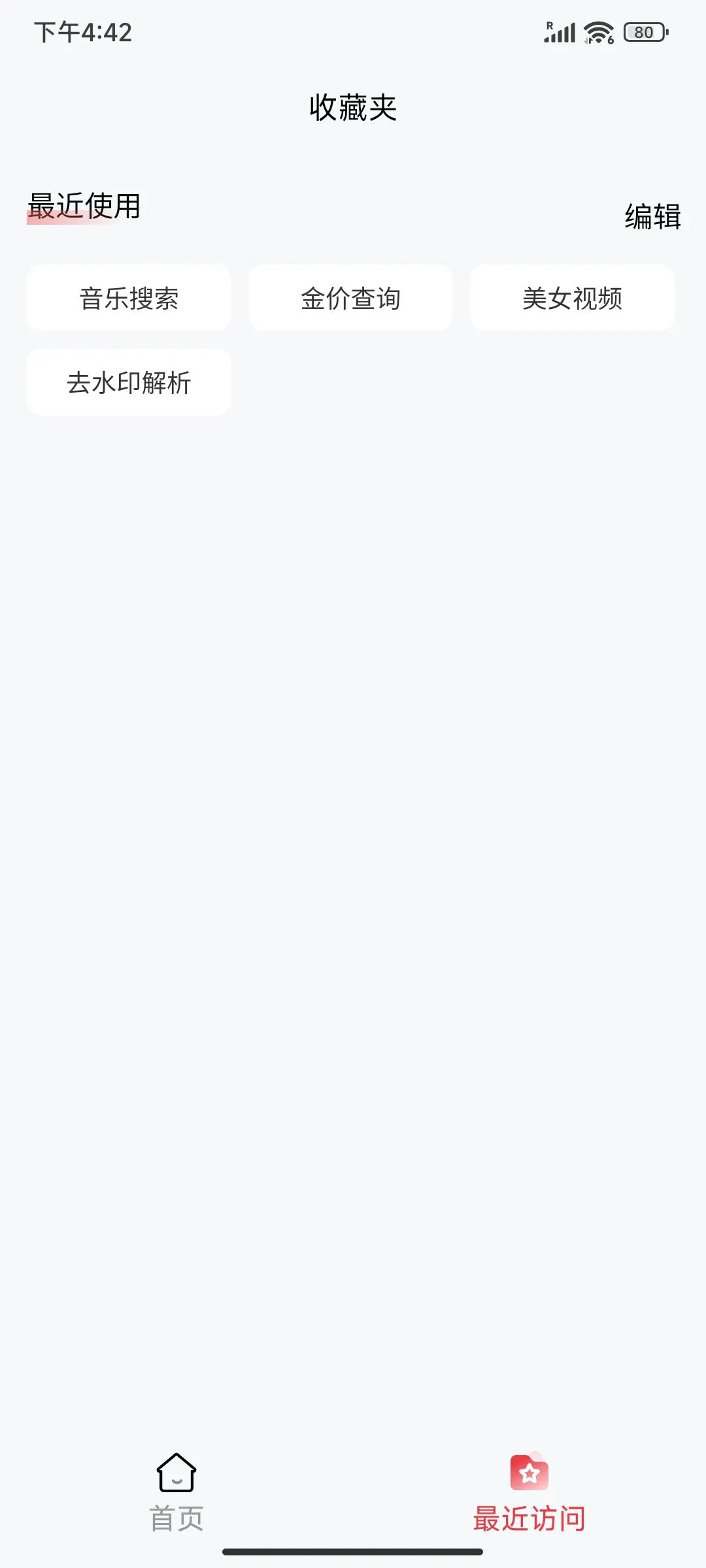 整个界面干净整洁,没有任何广告干扰,仅设有首页和最近访问两个页面,所有功能无需登录即可直接使用。