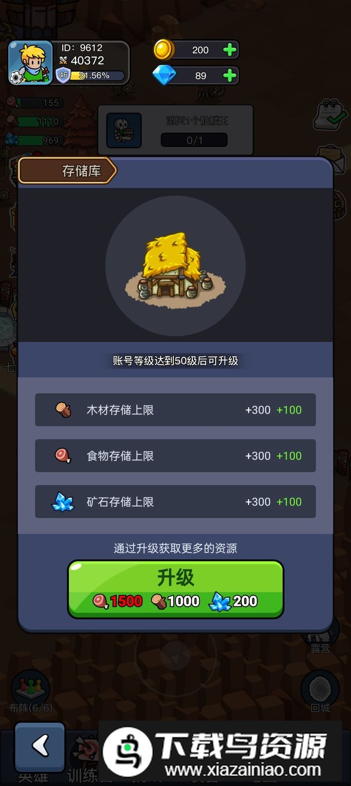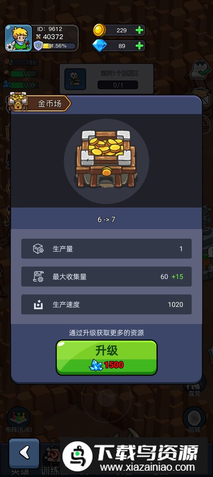 1. 游戏中共有六类资源:肉、木头、水晶、红水晶、钻石与金币;