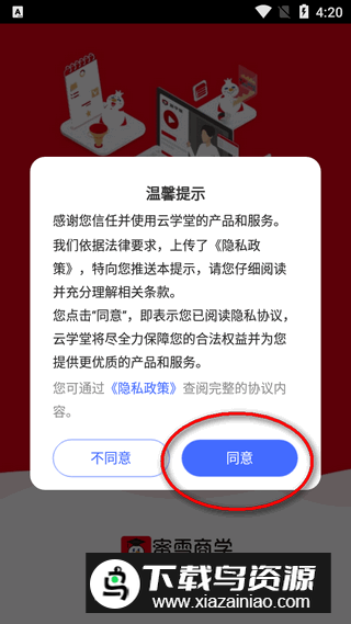 2、首次打开应用时请仔细阅读用户隐私协议内容,确认无误后点击同意进入下一步;