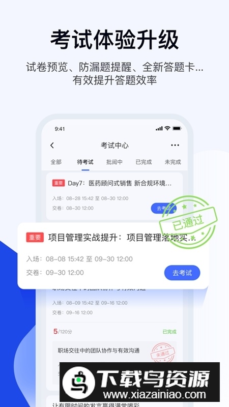 5、考试中心提供阶段性测验功能,可用于检验知识掌握程度与学习成效。