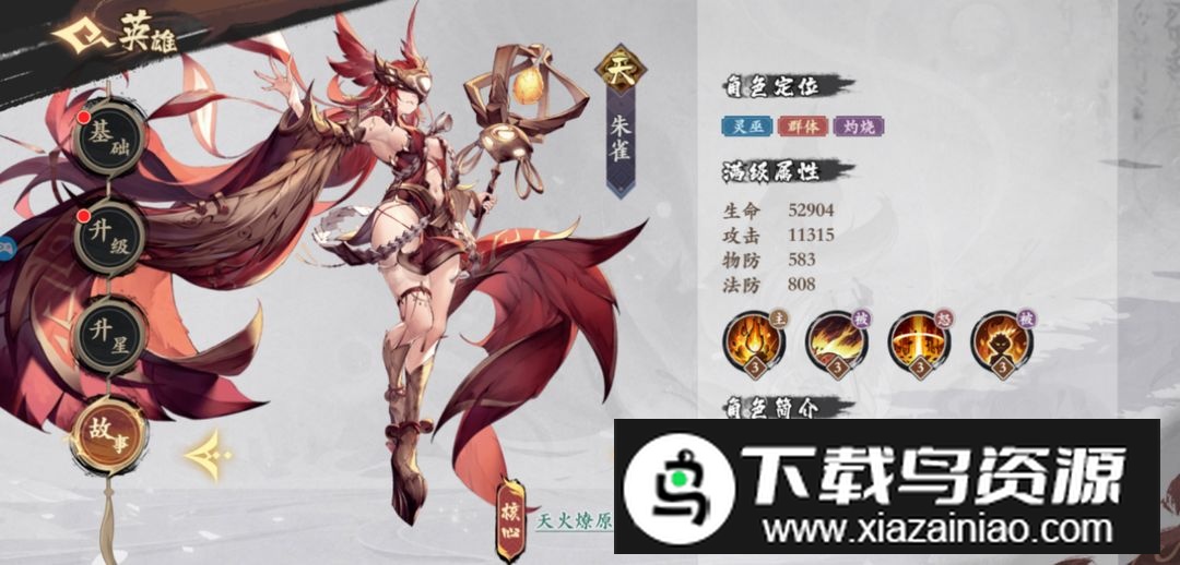 输出位可配置两张天族英雄,例如朱雀与风伯;朱雀和朱厌都能施加燃烧效果,朱雀技能还能根据燃烧层数提升伤害,风伯则能降低敌人法术防御,让队伍输出更加饱满。