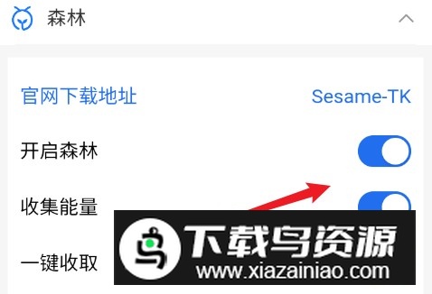 3、在森林设置中,将开启森林、收集能量与一键收取三个开关全部打开;