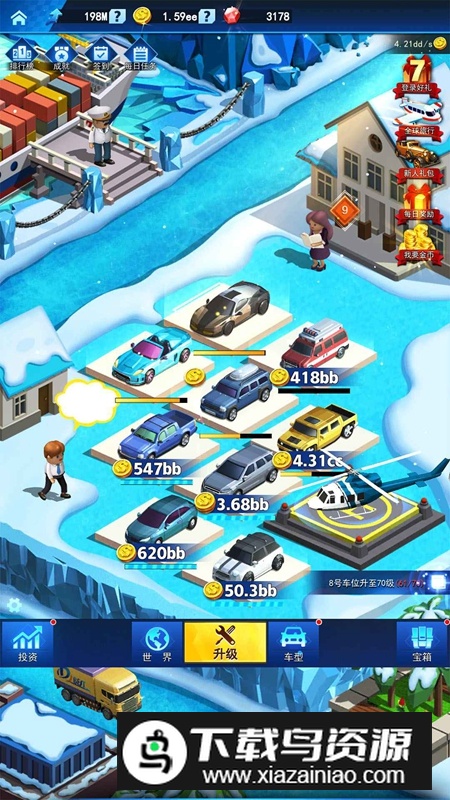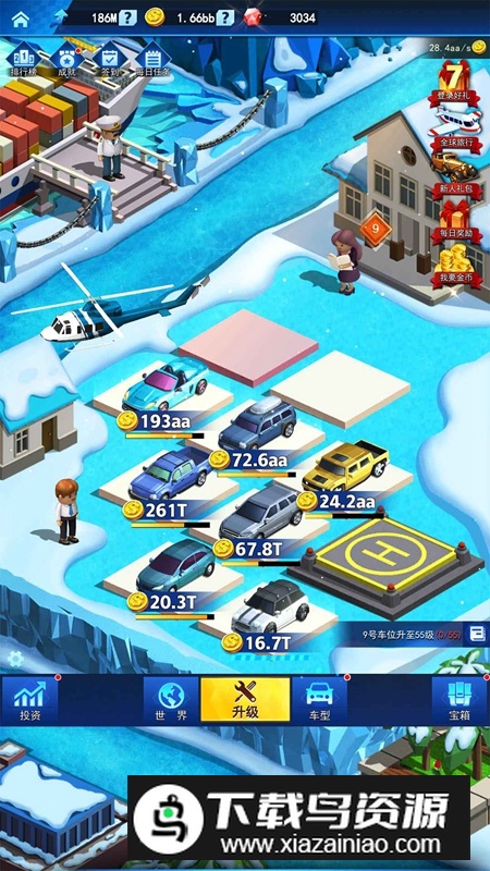 3.策略性经营玩法:除了竞速之外,玩家还需规划停车区域、吸引游客赚取金币,并通过合理分配资源升级车辆、优化生产线,逐步壮大汽车城规模。