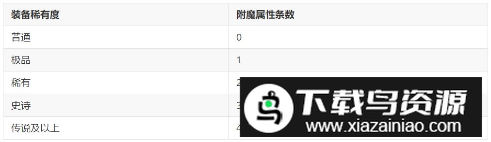 附魔属性条数与装备品质相关,可在锻造台进行重铸。附魔品质分五档:普通(白)<极品(绿)<稀有(蓝)<史诗(紫)<传说(橙)。不同部位可附魔属性类型不同,具体可在附魔界面查看说明。