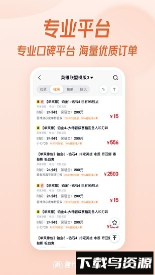 1、专业可靠的接单赚钱平台,订单类型多样且全程保障,覆盖各类游戏代练需求;