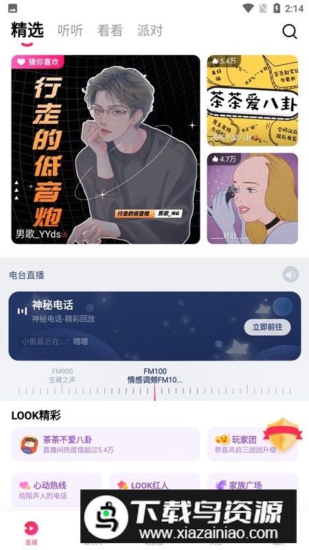 LOOK直播提供24小时互动电台直播,用声音温暖陪伴,带你遇见有趣的人;平台集结众多专业主播,推出情感问答、点歌互动、声控剧场等多元内容,懂你的心情,也给你长久陪伴,在聆听中收获治愈与共鸣。