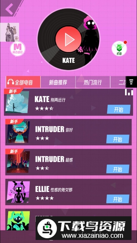 3.曲库包含大量DJ电音,节奏感强但判定区域偏小;