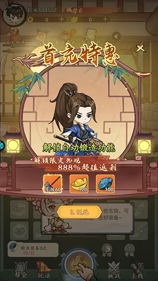 4.游戏内首充仅需一分钱,就能解锁超值福利与便捷的自动锻造功能;