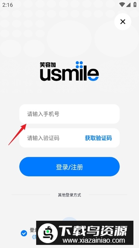 1.打开笑容加应用,使用手机号完成注册并登录账户;