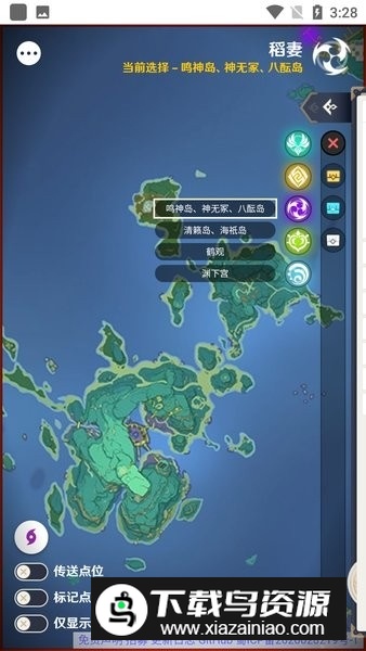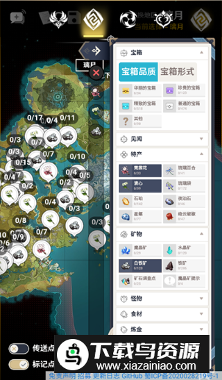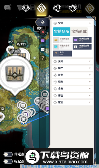 3、点击左侧筛选栏,可以按需勾选想要查看的资源类型,例如只显示特产或神瞳位置。