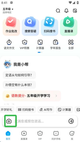 3.拍照搜题:支持数学、语文、英语等多科目题目拍照识别,快速获取答案;