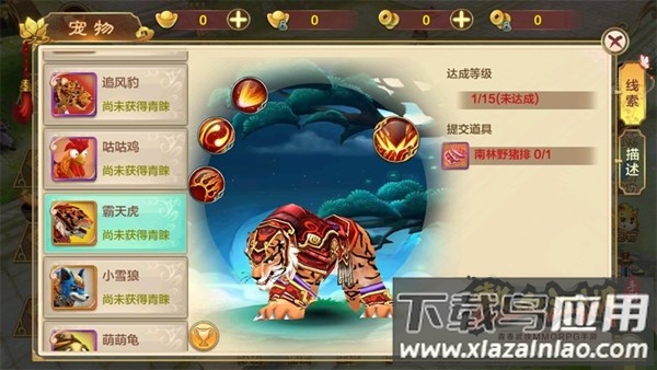 4、霸天虎:累计登录次日赠送,属于攻击型宠物;一技能附带击飞,二技能根据血量提升伤害,三技能突进增加暴击,终极技能造成高伤并眩晕,在PVP中效果显著。