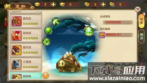 1、萌萌龟:通过24级支线任务获取,前往三邪圣地找到戚小山完成任务即可获得;作为防御型宠物,技能以嘲讽敌人、提升闪避和生命恢复为主,适合前期过渡使用。