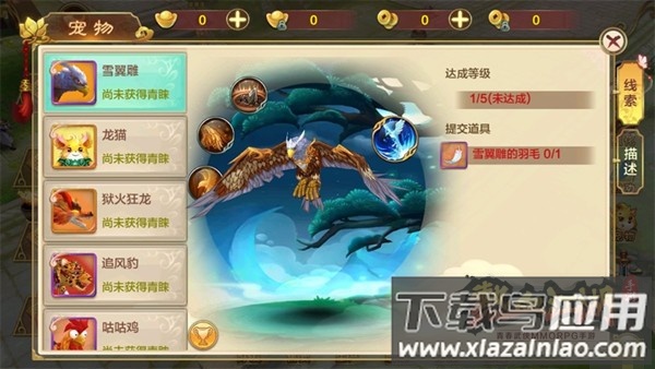 2、雪翼雕:完成主线任务即可获得,属性均衡且输出稳定;技能包含定身、击飞和眩晕等控制效果,适合弓手和医生职业,在风筝野怪和竞技场中表现优异。