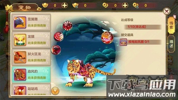 8、追风豹:参与充值活动赠送,属于刺客型宠物;可快速突进并利用血腥爪击造成高额爆发,嗜血撕咬和闪烁突袭附带控制效果,生存与输出兼备。