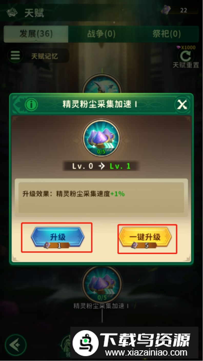 选中某一项可升级天赋,若天赋点充足,点击升级即可完成强化;