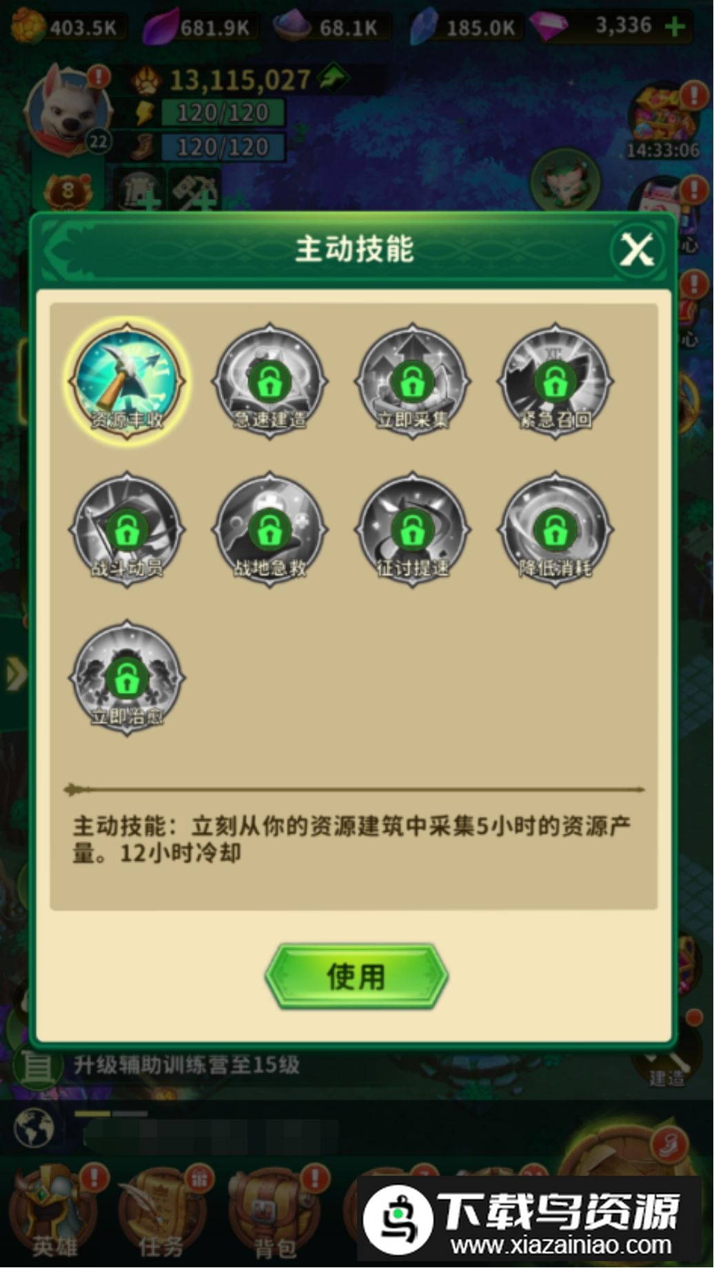 天赋提升到一定阶段,还能解锁领主主动技能。主动技能按钮位于主界面行动力条下方,方便随时查看与使用。