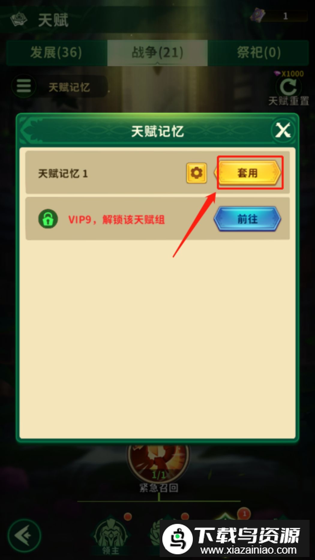 当领主VIP等级达到8级,将解锁【天赋记忆】功能。