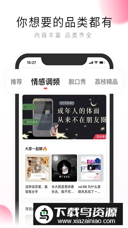1. 情感治愈类节目为你提供温暖陪伴,包含心情故事、励志文章和情感建议;