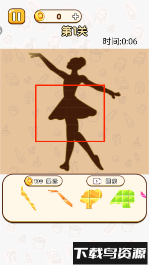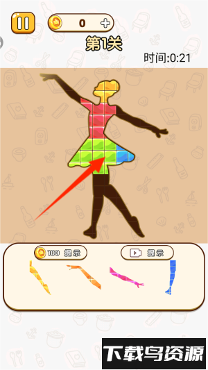 4、把底部各种形状的碎片移动并组合起来,完整还原女孩的舞蹈姿态。