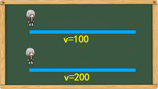 例如速度200的角色A比速度100的角色B行动快一倍,在B行动一次的周期内,A可以行动两次。