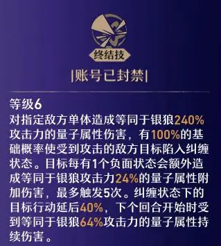 推条效果则相反。假设银狼对t剩余70%T的外宇宙之冰使用终结技并触发弱点击破,结合击破自带的25%延后、量子属性30%延后与银狼技能40%延后,总计95%行动延后,该敌人的行动位置将被推至165%T处,大幅延迟其下次行动。
