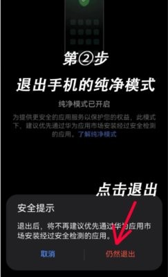 因软件来源非官方,安装时手机可能拦截,需进入设置-系统与更新-纯净模式,选择退出并确认。