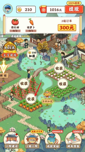 3、等待作物自然成熟,点击即可收获入库;